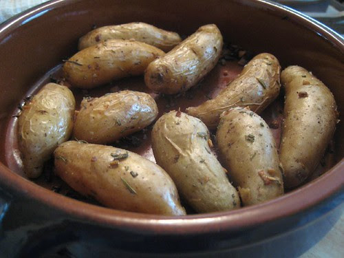 We're going to see a show tonight, so I promised I'd cook and have dinner ready in time for us to meet our friends. The squash was just sauteed and the potatoes were roasted with fresh rosemary, thyme, and for a little something different, lavender salt.